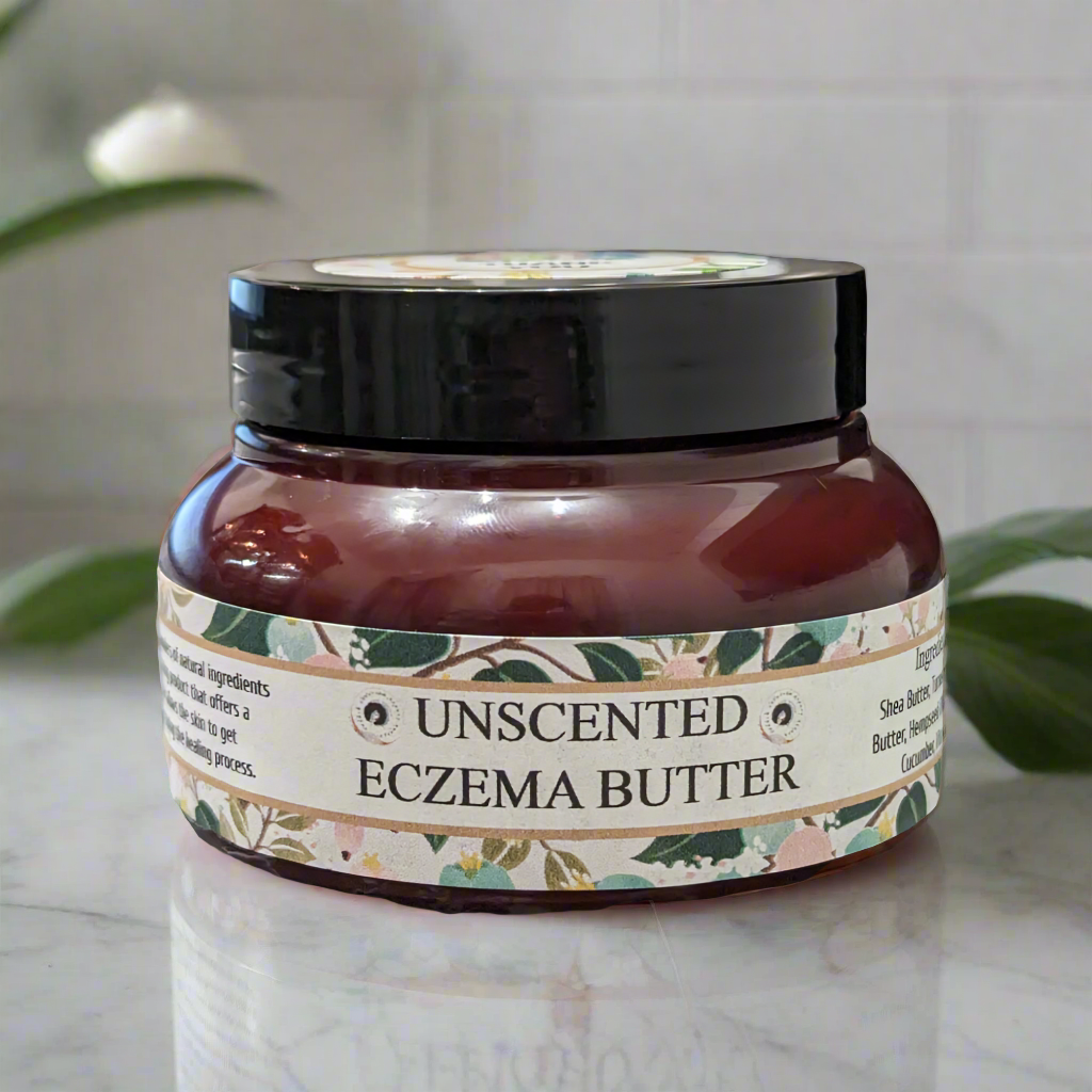 Our Eczema Butter is never scented. Scent can exacerbate Eczema. It can even cause outbreaks. If you suffer from Eczema consider using unscented Eczema soap and unscented laundry detergent/ Dryer sheets.